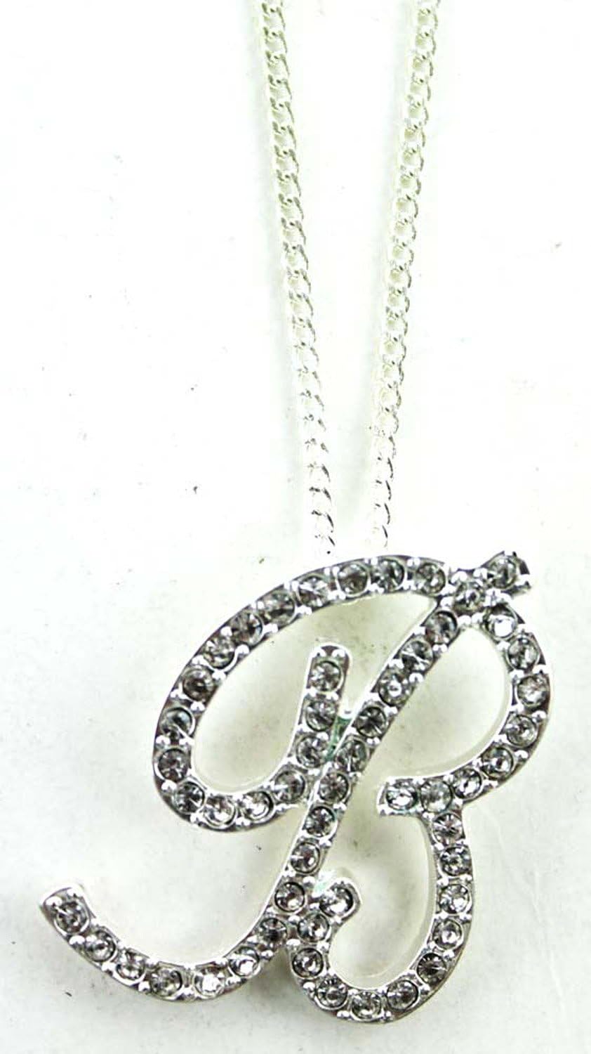 Amazon Com Rhinestone Letter B Pendant Necklace Initial Cursive